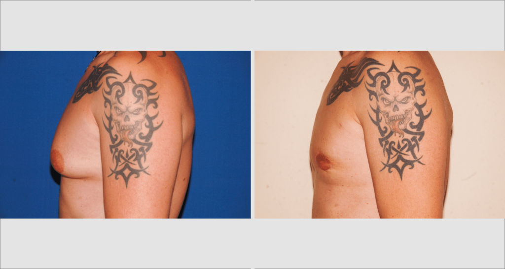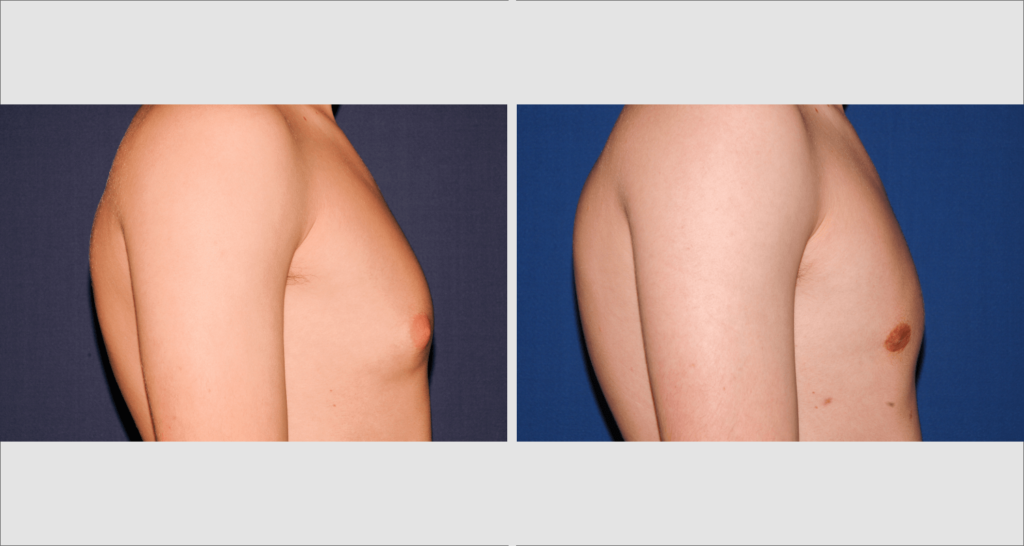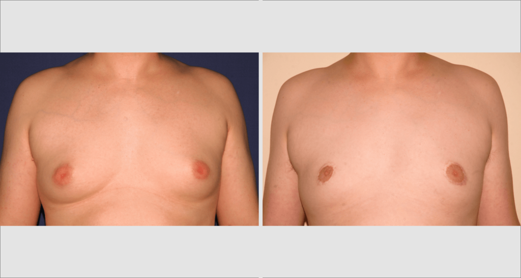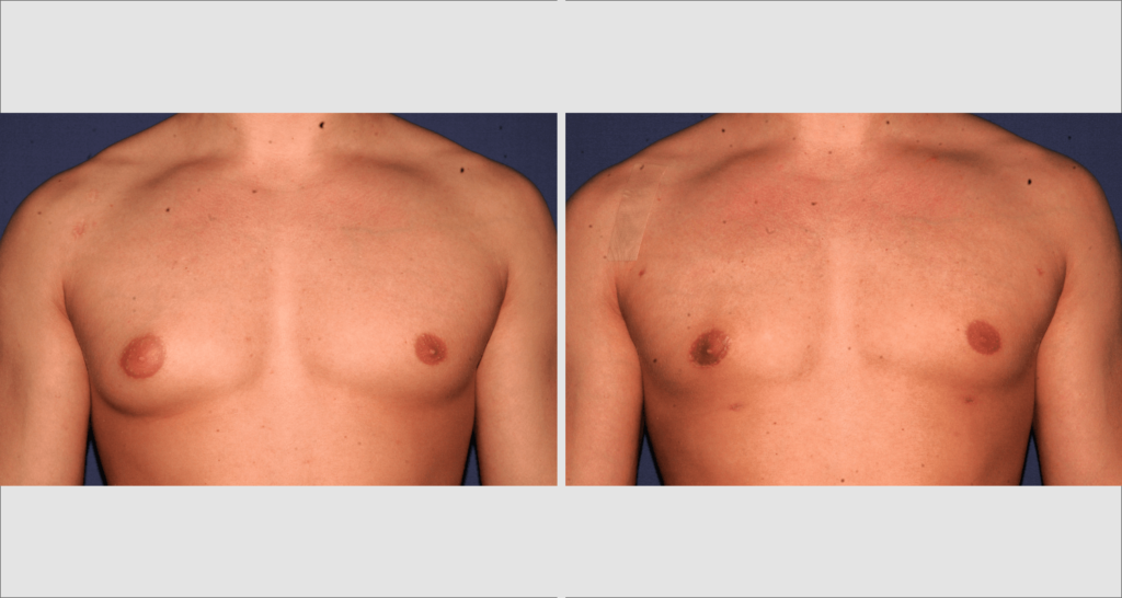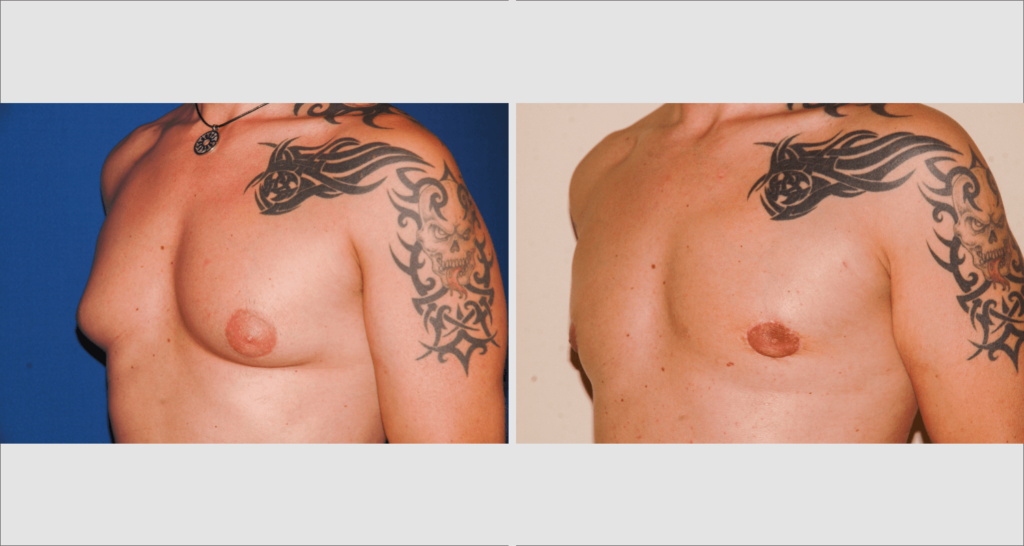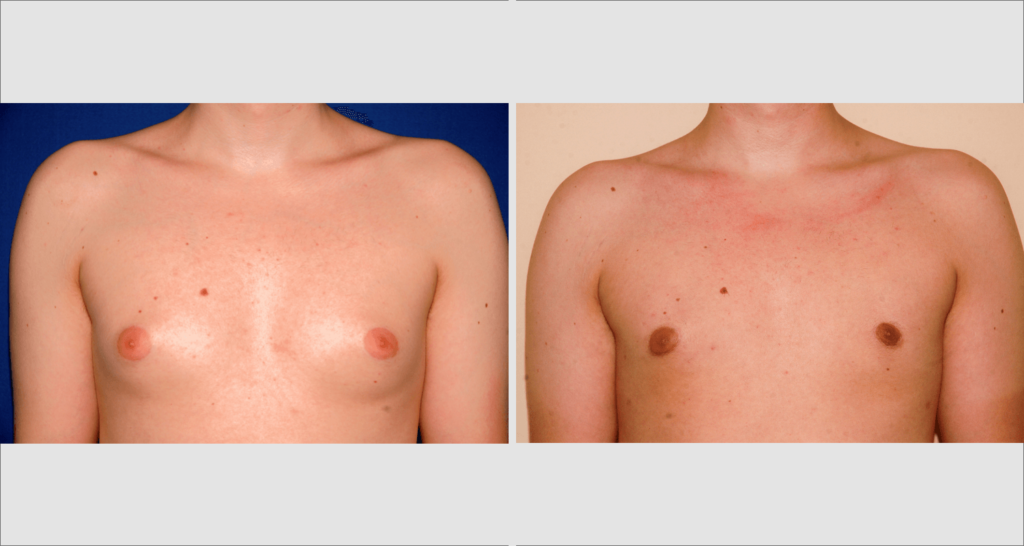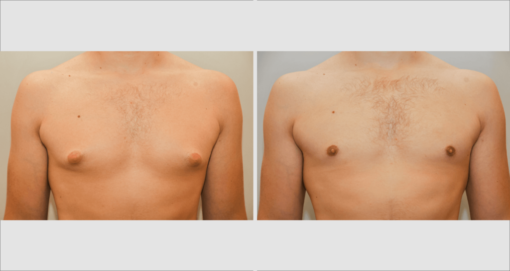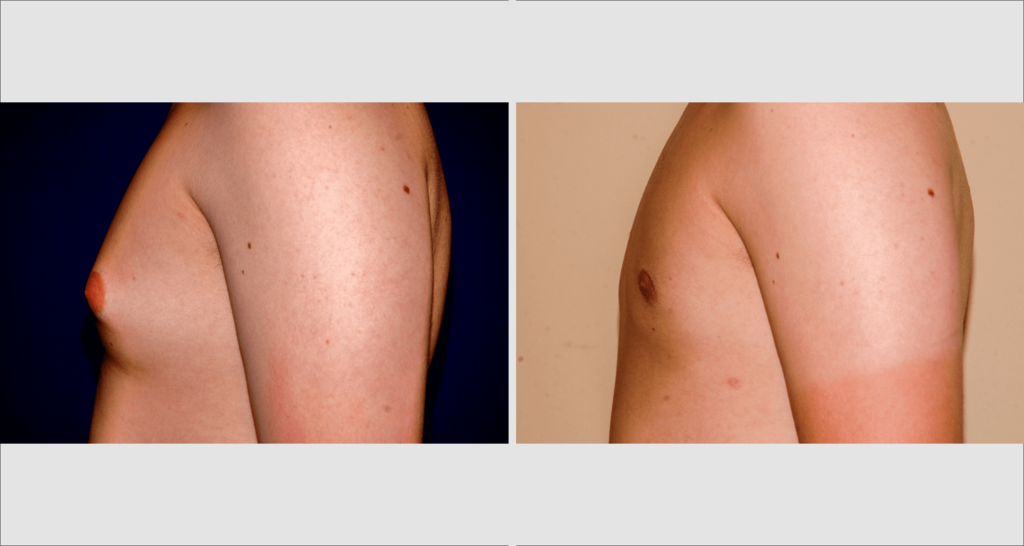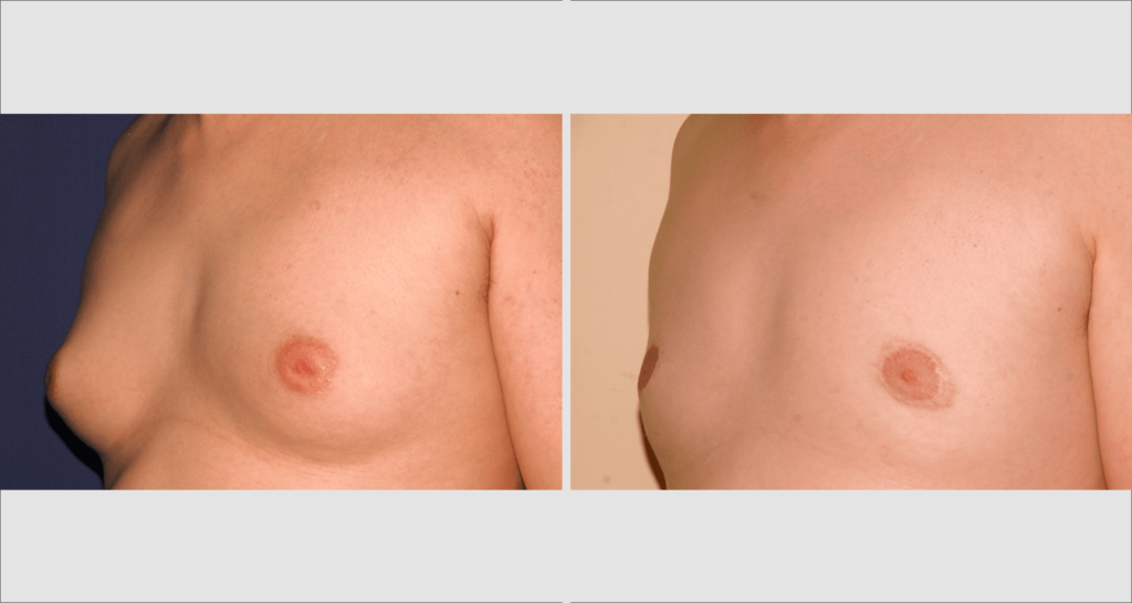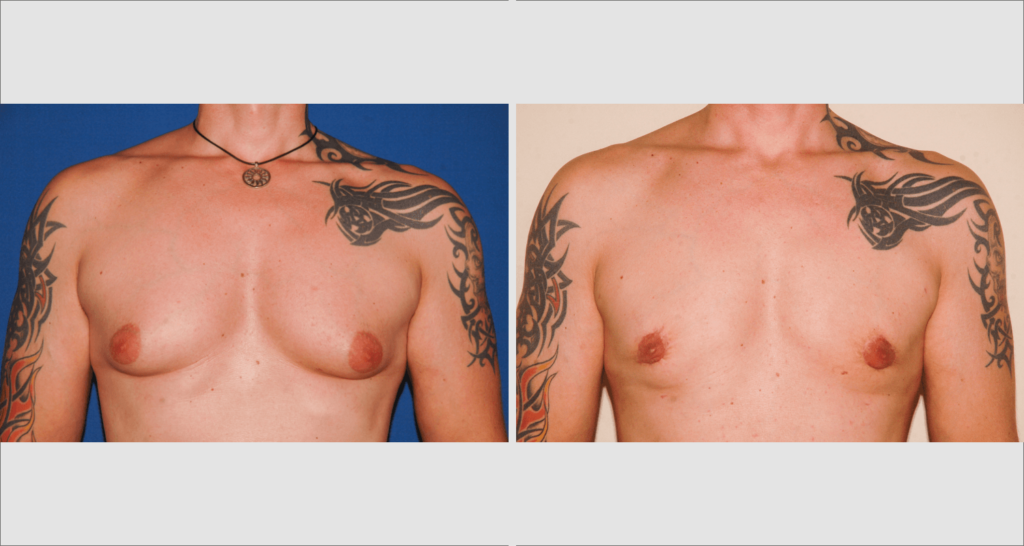Unsere Vorher-Nachher-Bilder zeigen ästhetisch und funktionelle Korrekturen bei Gynäkomastie – durch schonende Entfernung von Drüsengewebe und/oder Fettanteilen entsteht eine flachere, definierte und maskulinere Brustkontur. Gerade bei Gynäkomastie ist Erfahrung essenziell, um ein harmonisches, natürlich wirkendes Ergebnis zu erzielen.