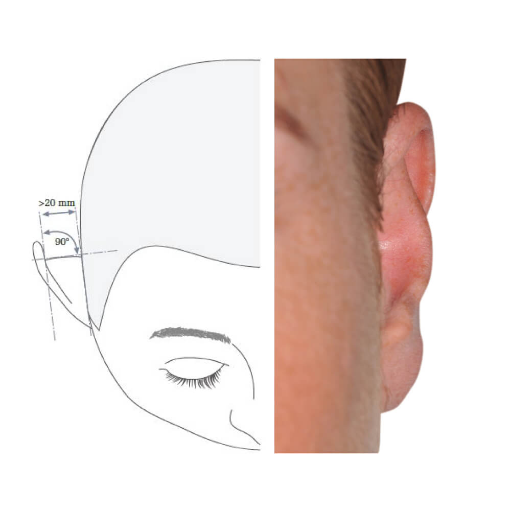 Am häufigsten liegt interessanterweise die Mischform vor, also eine zu breite concha, kombiniert mit stumpfem Anthelixwinkel.